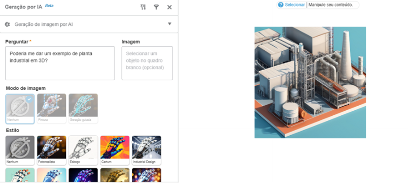 A geração de imagens no 3DWhiteboard permite transformar ideias em representações visuais em poucos segundos.