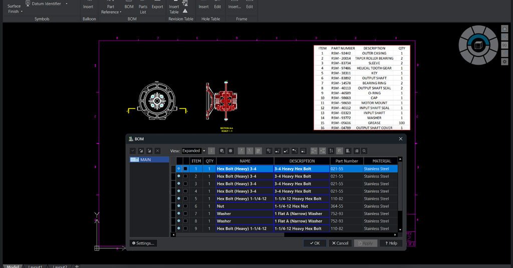 A nova configuração de lista de materiais (BOM) oferece mais controle sobre quais propriedades são exibidas nas listas de peças, BOMs e símbolos relacionados. Isso permite uma documentação mais clara, personalizada e alinhada aos requisitos de cada projeto.