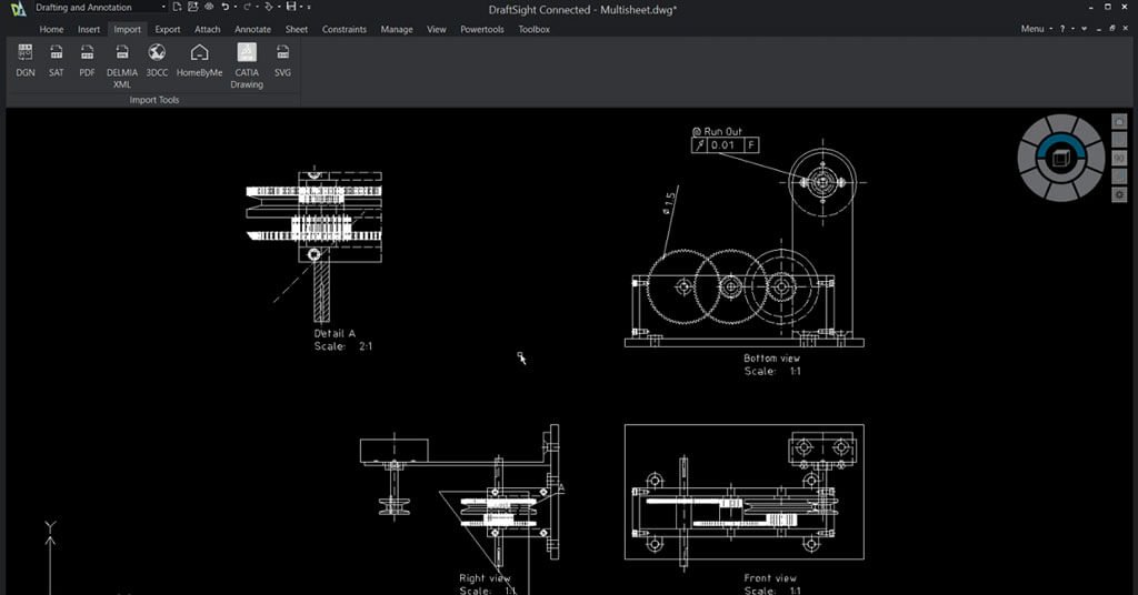 Os usuários agora podem importar desenhos gerados no CATIA, seja a partir do disco local ou diretamente da plataforma 3DEXPERIENCE. O DraftSight mantém as visualizações e os nomes de folhas, garantindo a fidelidade dos dados gráficos no processo de conversão.